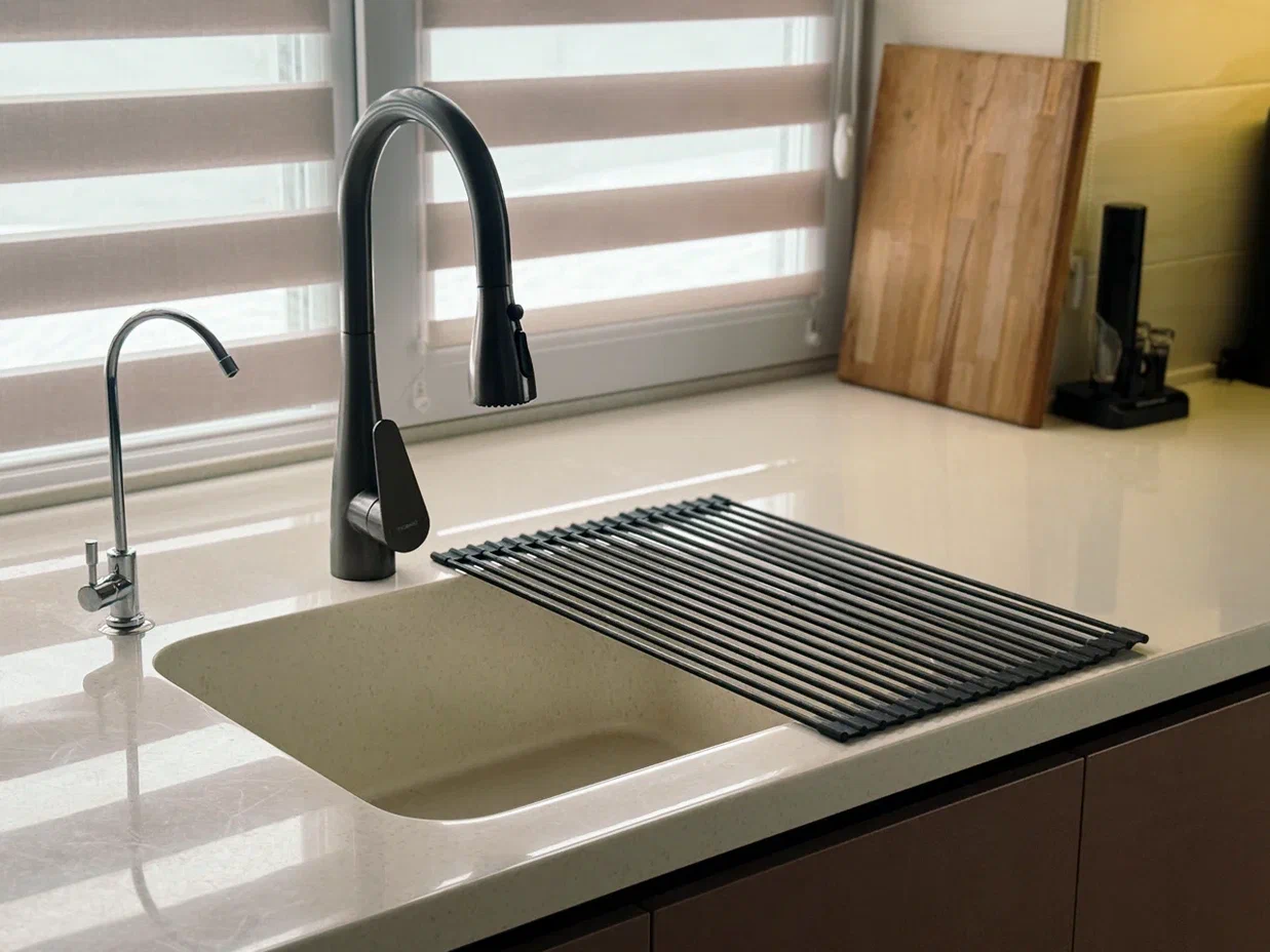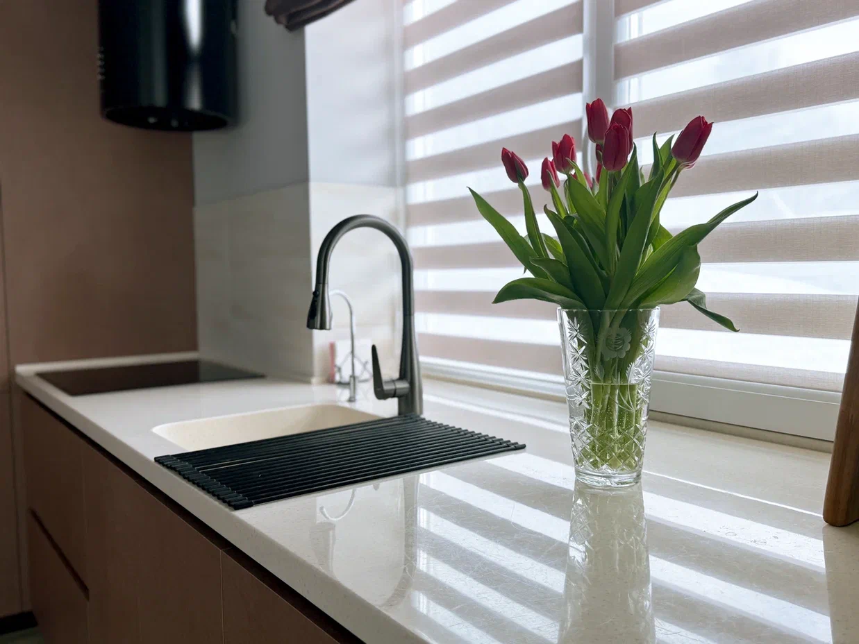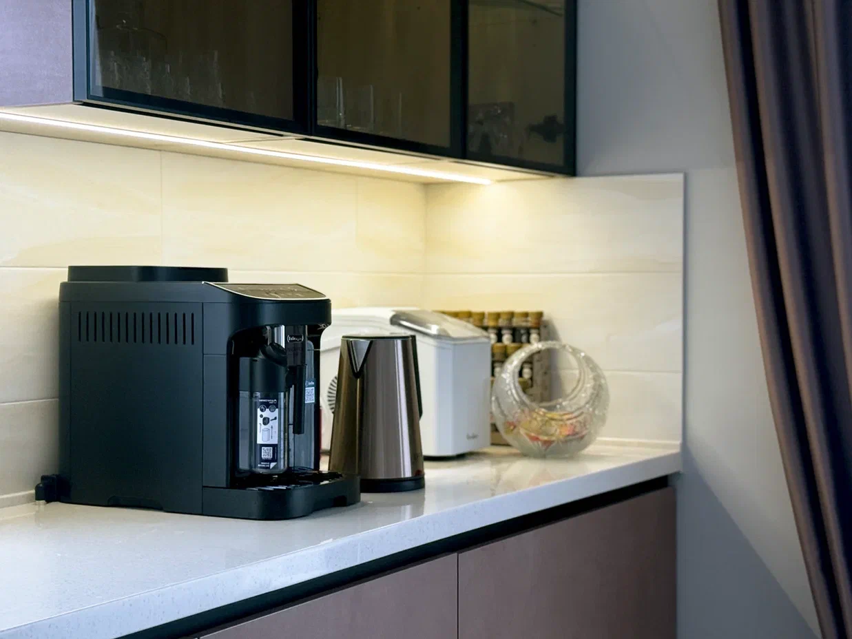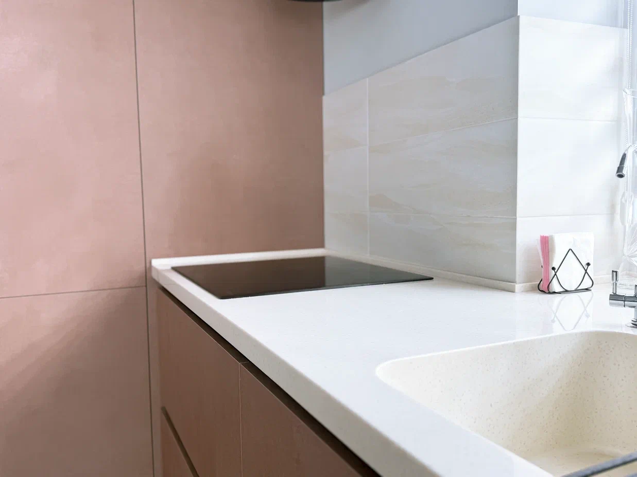 Современная кухня в тёплых терракотовых оттенках с лаконичным дизайном и продуманной эргономикой. Чистые линии фасадов, чёрные акценты и мягкая подсветка создают уютную атмосферу и делают пространство функциональным для ежедневного использования.